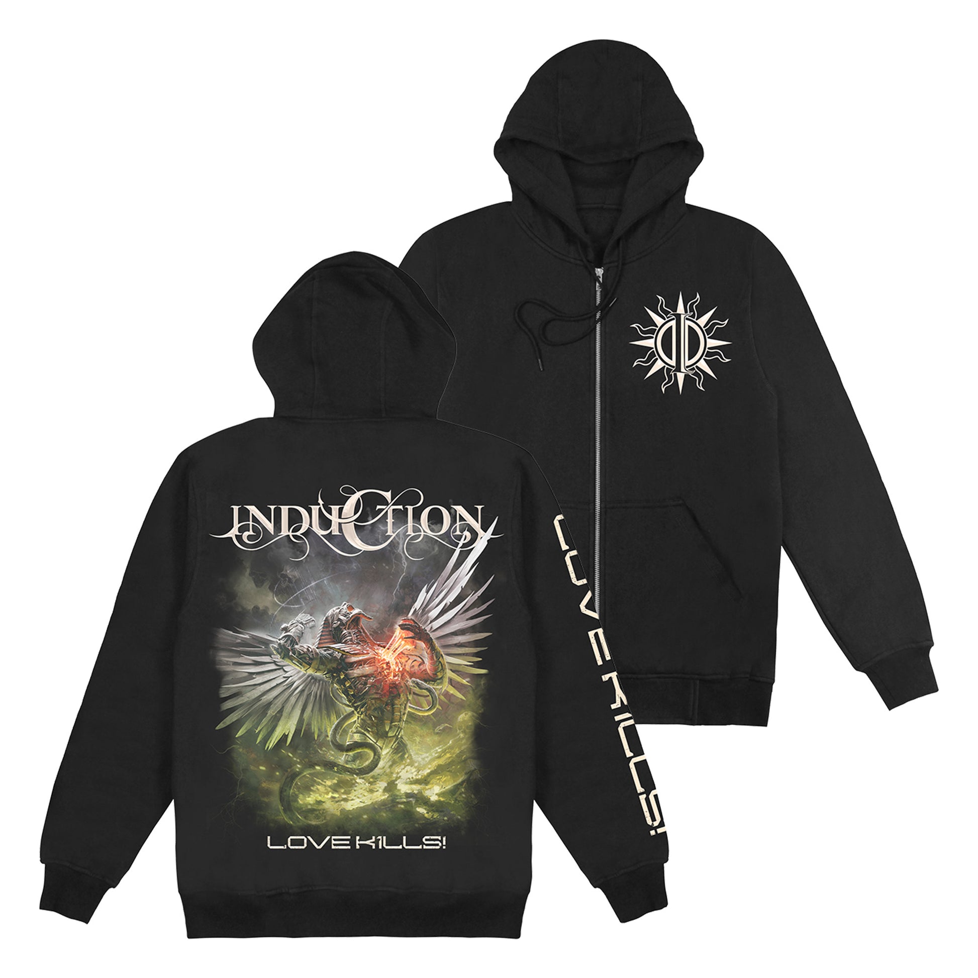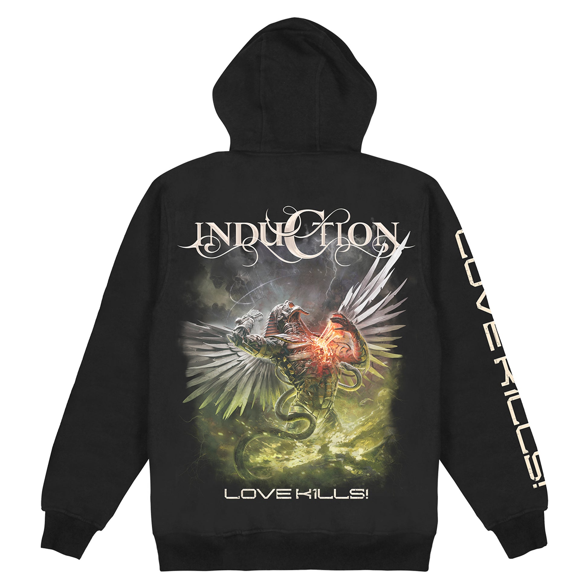 Introducing the new and Limited Edition "LOVE KILLS" Zipper! This exclusive piece features the stunning artwork from our new album, prominently displayed on the back, with letters on the sleeve that showcases our unique style. Made from high-quality heavy cotton, this Zipper offers both durability and comfort, making it perfect for cozying up at home or staying warm at our shows. Show your support for Induction and make a statement with this must-have merch item. Grab yours now and be part of the Induction family!